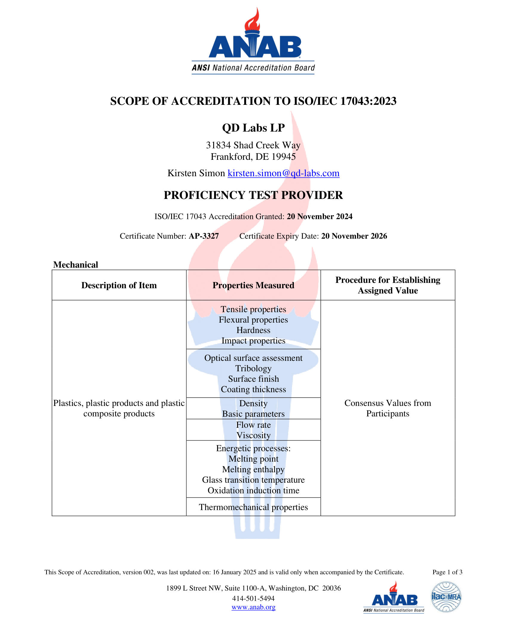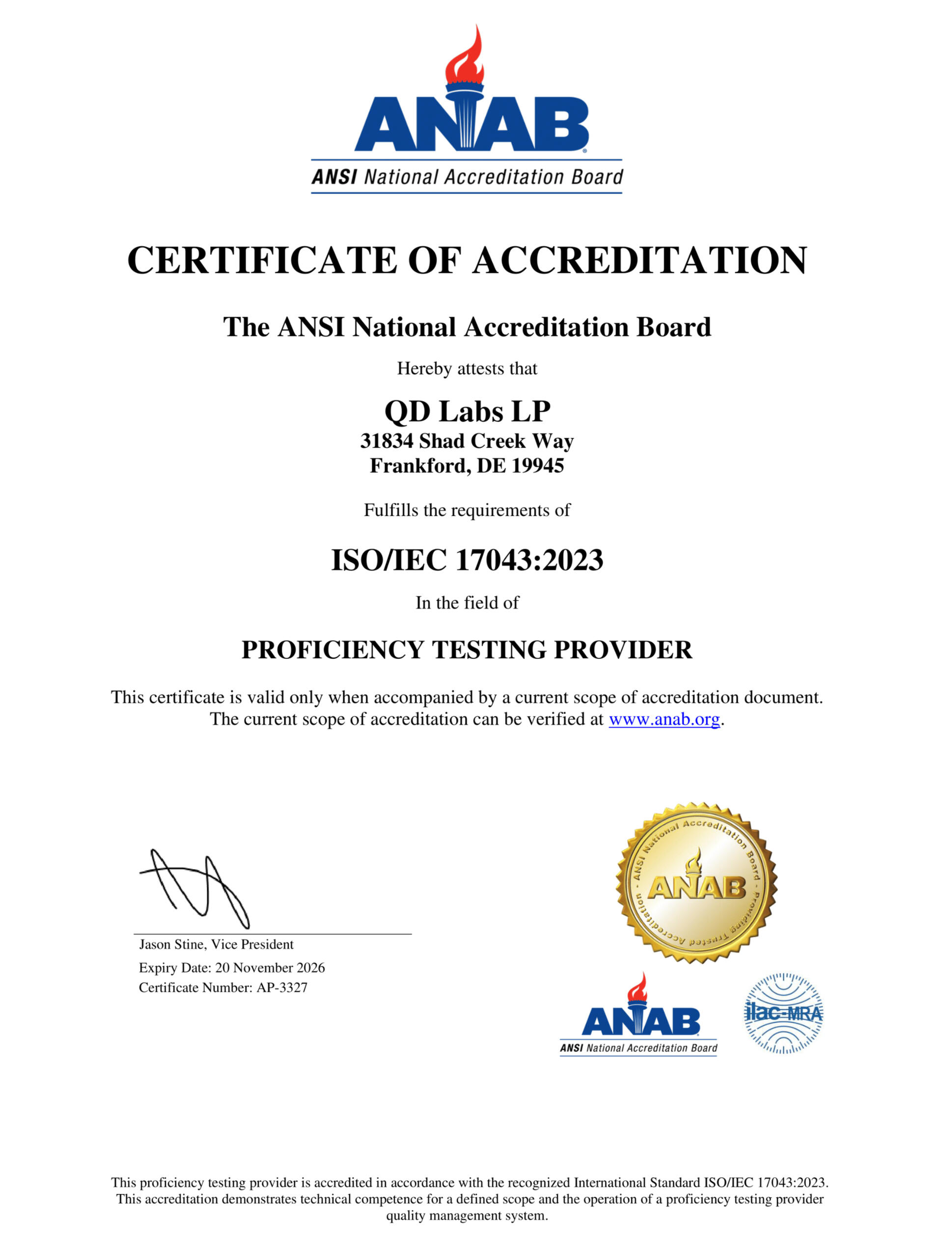QD Labs is accredited with ANAB according to ISO/IEC 17043:2023.